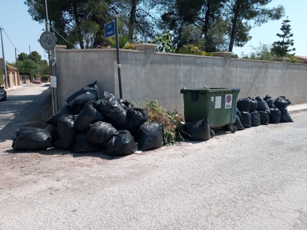 Tal como se puede observar en las fotos que adjuntamos ( todas tomadas durante el día de hoy) la situación de abandono, dejadez y retraso en la recogida de residuos y enseres y podas, lleva a que se produzcan imagenes como las se pueden ver, imagenes que se repiten cada vez con mas asiduidad